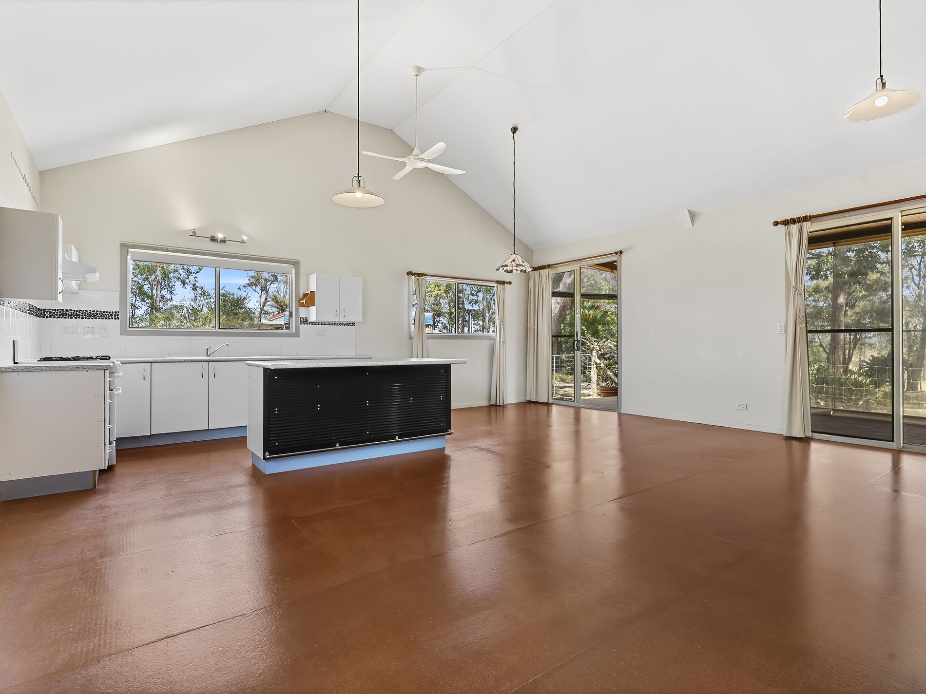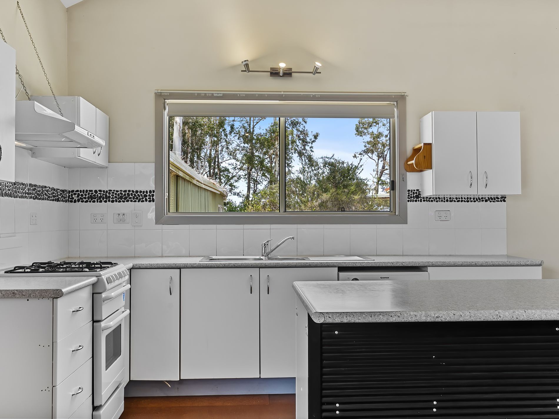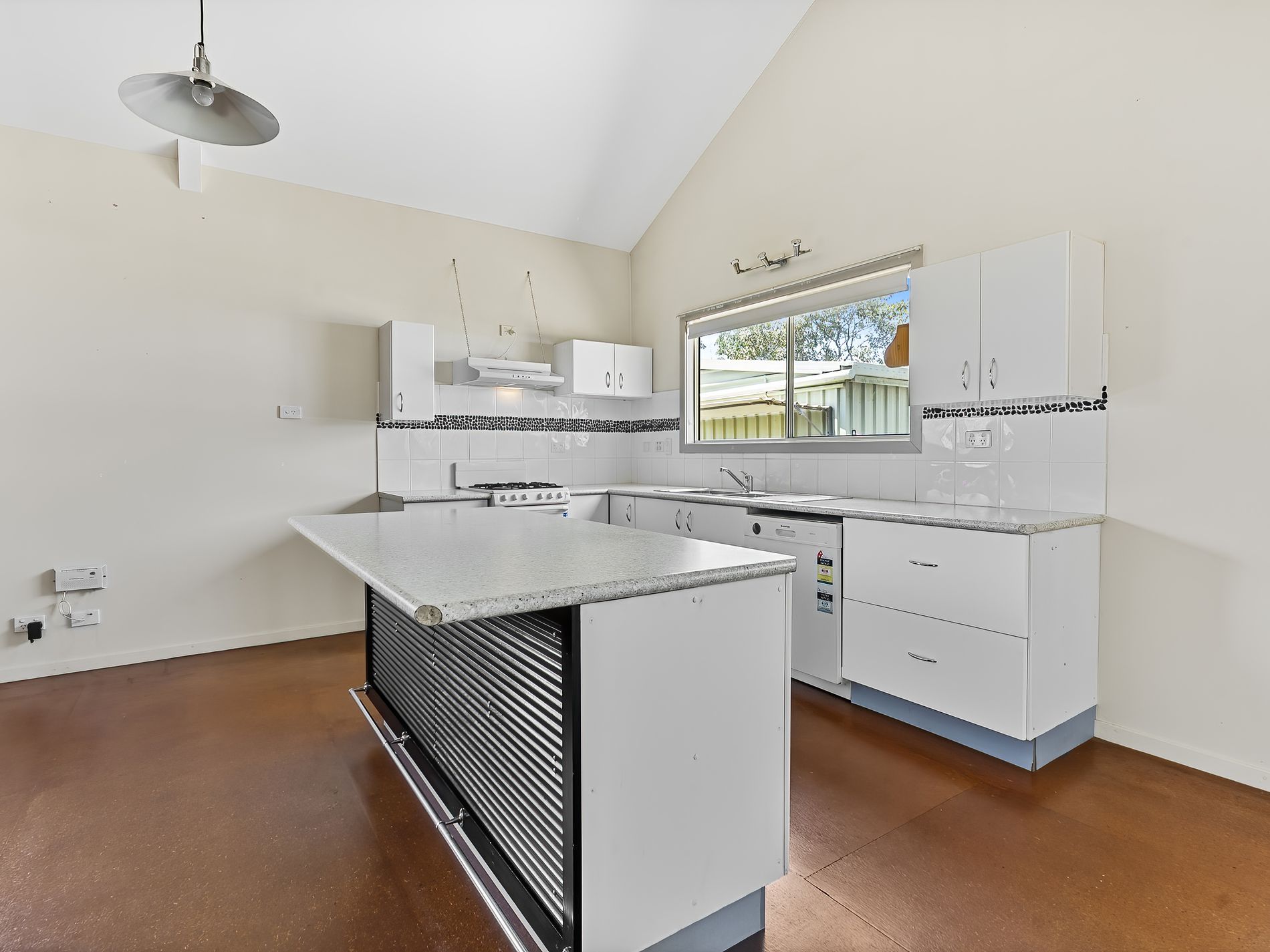 The kitchen is generous in size and features an island bench with breakfast bar. The bathroom is also spacious and practical with a separate toilet.